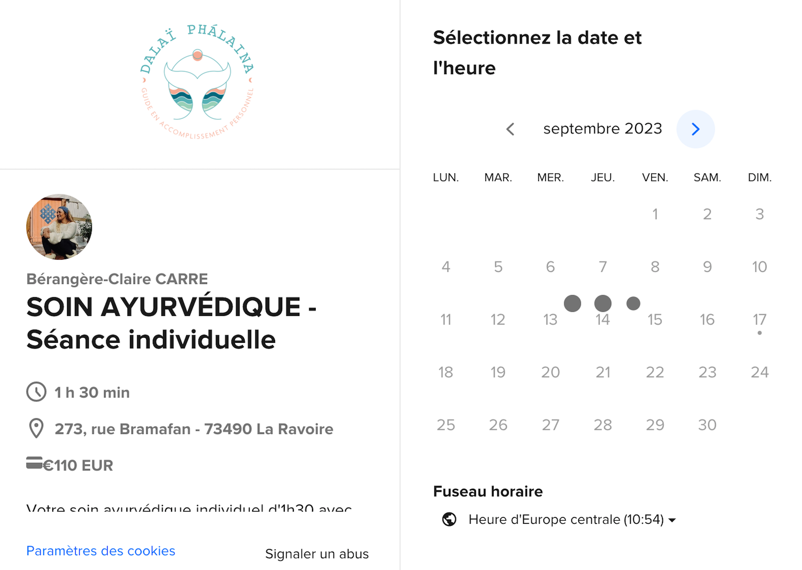 La possibilité pour un visiteur de réserver un créneau en ligne pour un cours de Yoga ou un massage depuis le site faisait partie des exigences de notre client. Grâce au module Calendly, notre client Dalaï Phàlaina reçoit en direct, dans son agenda, une notification détaillée l'informant de la réservation d'un créneau individuel ou de groupe par un nouveau client, et ce de façon totalement automatisée. De son côté, le bénéficiaire de la prestation reçoit également toutes les infos pratiques par mail, sms et/ou dans son calendrier. Il ne lui reste plus qu'à s'acquitter du montant de la prestation réservée.